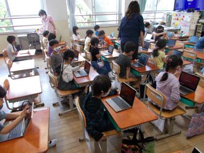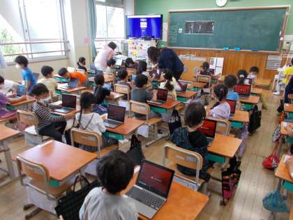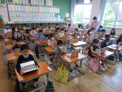 1年生もGIGA端末に触れてみました。