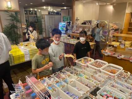 食事の後はお待ちかねのお土産タイムです。お家の人や親戚の人,自分用とみんなあれこれ悩むのも楽しんでいる様子でした。
