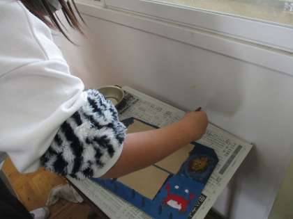 図工展にむけて「ホワイトボード」が完成に近づいています。今日はニスを塗り始めました。ニスを塗ると作品がとてもきれいになりました。後は組み立てて完成です。すてきな作品の展示が楽しみです。