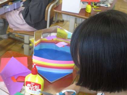図画工作の時間に「ミラクル!ミラーワールド」の学習をしました。ミラーシートで映り方を試しながら,作品を作っていきました。子どもたちは工夫しながら、ミラーのよさを生かして、思いに合う材料を選んだり、組み合わせたりしていました。完成が楽しみです。