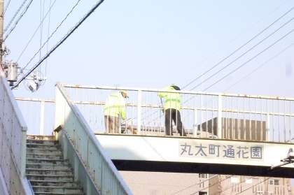 今朝起きると,うっすら雪が積もっていました。歩道橋の階段にももちろん雪が。階段や通路に積もった雪を【花園子ども見守り隊】の方が竹箒ではいてくださっていました。学校のそばにある歩道橋は,花園小学校のほとんどの子ども達が登下校に使っています。近くの病院に出勤される目の不自由な方や中学生,高校生も使います。利用者の安全を考えてやってくださっていました。大変ありがとうございます。