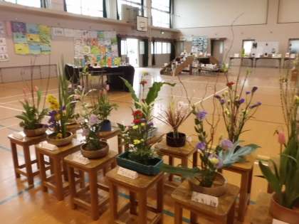 今回,6年生が華道体験で活けたお花や,6年生が「命の学習」でお世話になった絵本作家の「うさ先生」が取り組んでおられる「震災で消えた小さな命展」の作品も展示しています。ぜひご覧ください。