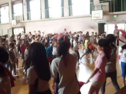 応援練習も最後となりました。応援団より,集まってきたみんなのほうが熱い感じでした。心地よい盛り上がりの中で本番を迎えます。