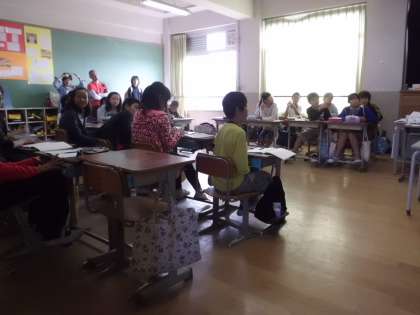 子ども達は…。カメラ目線の子ども達もちらほらと。なにやら,いつもよりテンションが上がっているようでした。高学年もおうちの方に来ていただくのはうれしい感じですね。