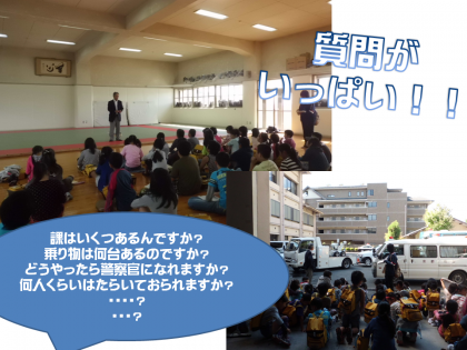 子ども達は,警察署の仕事,様子について学習を進めていく中で,たくさんの質問事項があったようで,次から次へと質問がとびかい,答えていただいた署員の方も「もっと調べておくとよかったです…。」と驚いておられました。