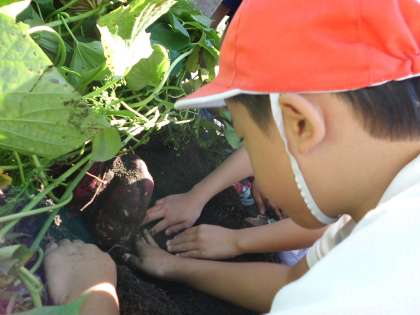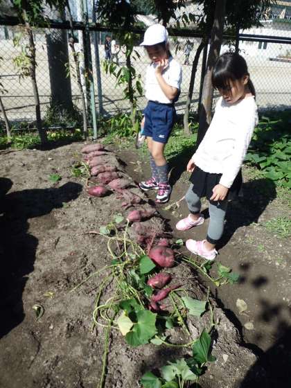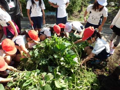 2年生が育ててきたサツマイモの収穫をしました。今年はとっても大きく実って,びっくりするくらいの大きなサツマイモもありました。