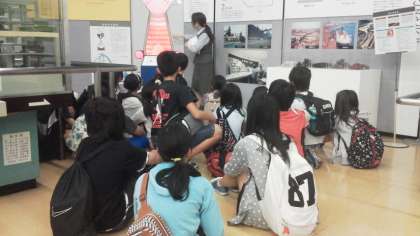 見学の最後は、展示ホールでの学習です。このあと姫路城に向かいます。