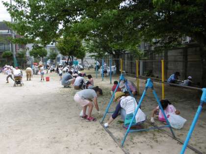 ごみ0の取組を進めました。1〜3年生は運動場まわりを担当します。早くから,地域の方々,PTAの方々もご来校いただき,暑い中でしたが,共に汗を流して美しい運動場になりました。ご協力ありがとうございました。