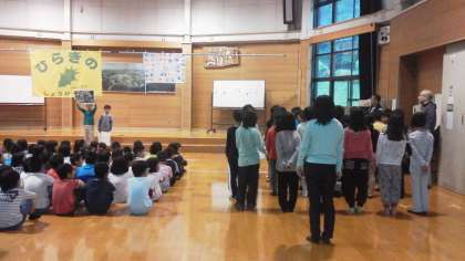 子どもたちは全員元気に2日目の活動に入りました。朝の集いは,同じ日程で活動している柊野小学校と一緒に行いました。学校紹介では,花園小学校のよさやクラスのよさを伝えようといっぱい練習した成果を発揮できました。