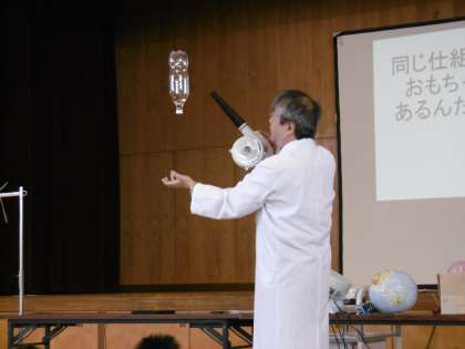 立命館大学の先生と学生さんが,子どもたちに科学の楽しさを体験を通して学習するプログラムをもって本校に来てくださいました。それが「サイエンスサタデー」です。