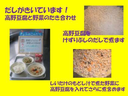 今日の給食〜高野豆腐と野菜のたき合わせ
