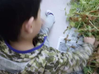 花壇で育ててくださっていたエンドウ豆を収穫しました。