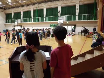 5年生は,自分たちで考えた演出で1年生に歌をおくりました。