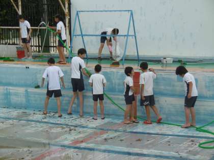 プール清掃 6年生