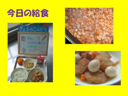 「ごま酢煮」には, 今まで「米酢」を使用していましたが, 今月は米酢の代わりに「ゆず果汁」を使用しました。今までのごま酢煮が好きな子, 今日のごま酢煮が好きな子が同じくらいに分かれました。さわやかなゆずの香りが楽しめるおかずになっています。