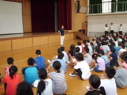 朝会で校長先生のお話をききました。