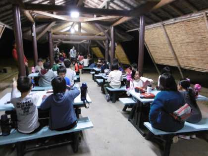 今日の夕食です。元気いっぱい活動した子どもたち。おいしくいただきました。このあとは,お楽しみのキャンプファイヤーです。