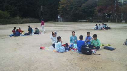 お弁当をいきいきセンターの前の広場で食べました。おうちの方の作った食事もこれから,しばらくいただくことはできません。その分味わって食べました。