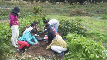 あるグループは,2,3のグループ合同でサツマイモの収穫を行いました。実りの秋を感じる活動でした。