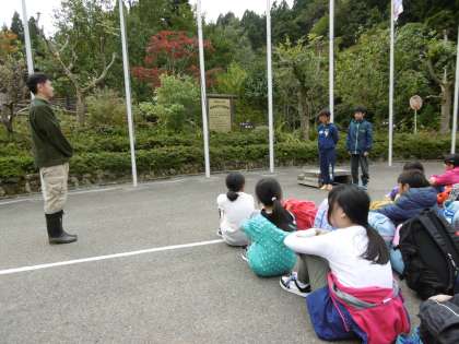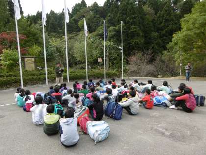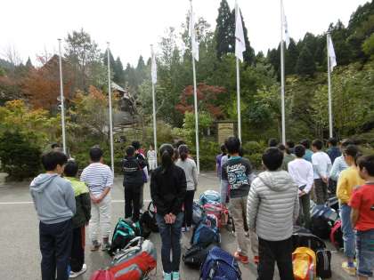 久多を後にして,バスに揺られること約1時間。花背山の家に到着しました。さっそく入所式です。とても立派な態度で,山の家の先生のお話を聞きくことができました。司会のお友達,言葉のお友達もしっかっり言うことができました。これから3日間,よろしくお願いいたします。