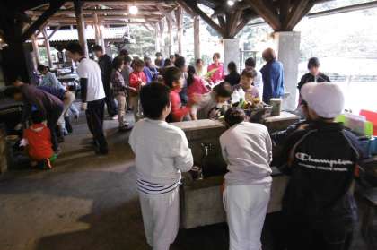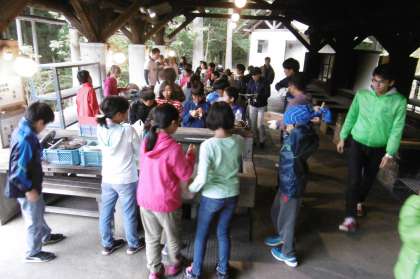 所内散策の次は,野外炊事。山の家の先生の説明を聞いてから取りかかりました。おいしいカレーができるといいね。