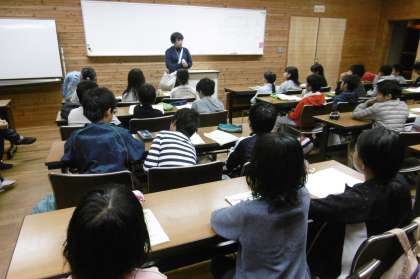 夕食後の天体観測は,あいにくの曇り空で残念ながらできませんでした。その時間は,ゆっくりロッジで過ごしました。そのあとお風呂に入り,研修室で反省会をしました。子どもたちは,今日の活動の振り返りをし,明日の活動の見通しを立てました。これからロッジに戻って就寝です。明日に備えて,今日もゆっくり休みましょう。