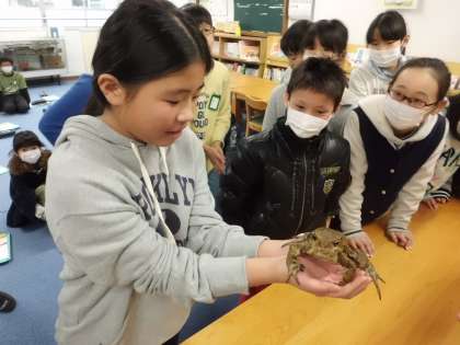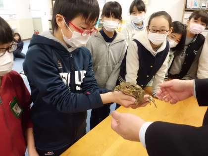 最後はオオサンショウウオと同じ両生類のカエルを触りました。