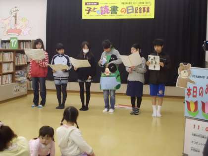 15日(土)に図書委員会の6年生が,中央図書館で子ども読書の日記念事業のイベントを行いました。