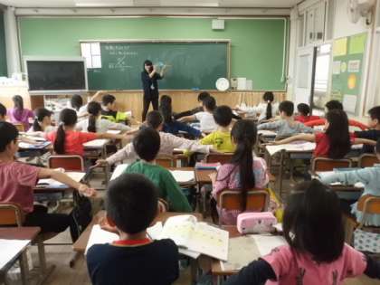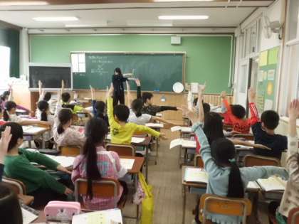 4年生は算数の学習で,90度を超える角度の角の学習をしていました。