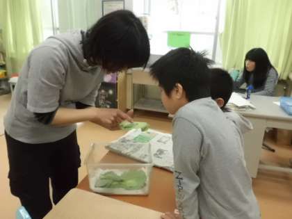 はなぞの学級では,キャベツの葉っぱについていたモンシロチョウの幼虫を飼う用意をしていました。