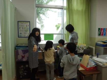 と先生に言われると,なかよく順番に洗いに行っていました。
