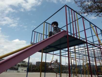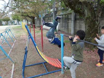 はなぞの学級の子どもたちは体のバランスをとることも学習の1つということで,平均台を渡ったり,総合遊具で遊んだり,鉄棒をしたりをすることもあります。