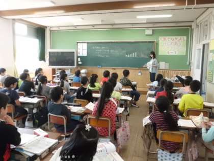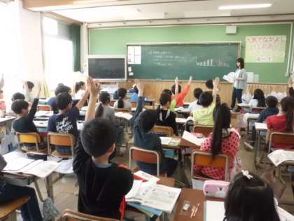 4年生は社会の学習で水道について学習するために,まず,京都市の水の使用量について学んでいました。