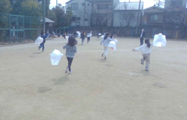生活科の「ふゆとともだち」の学習で、たこあげをしました。