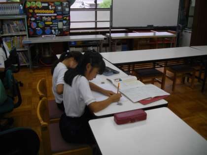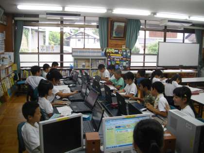 4年生は国語「手と心で読む」の学習の中で,自分がもっと知りたいと思ったことをコンピュータや図書館の本で調べています。点字は,どんな物やどんなところで使われているのかを調べたり,点字を考案したルイ=ブライユはどんな人だったのかを調べています。各自が調べたいことをテーマを決めて,ノートにまとめているところです。コンピュータで検索するのに文字を入力するのが難しく苦労しているようですが,このような調べ方にも慣れ,たくさんの資料の中からどの資料を使うのがよいのか選択することや,課題に沿って調べたことや集めた資料を整理する力を身につけていけたらと思います。