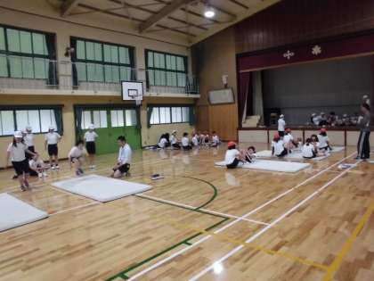 天気はスッキリしない中でしたが,5・6時間目に,高学年を対象にした新体力テストを実施しました。今回は,上体起こし・長座体前屈・反復横跳び,立ち幅とびの記録を測り,それぞれに今持てる力を精一杯出して,どれも真剣に取り組むことができていました。