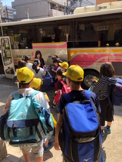 お世話になった宿泊先で退館式を行い,これから科学館での活動です。