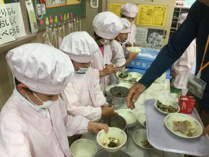 毎日給食当番をしている甲斐もあって,とても上手に配膳できるようになってきました。