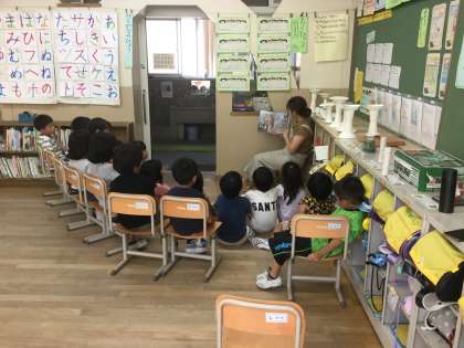 昼の10分間読書タイムに,図書ボランティアの方が読み聞かせに来てくださいました。