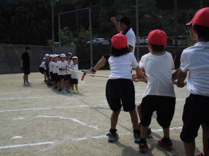 9月10日(火)昼休みに縦割り競技「綱引き」の練習をしました。入場ー綱引きー退場と, 一連の動きを練習しました。当日は, 白熱した試合が予想されます。