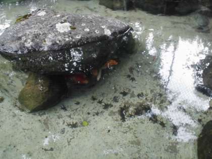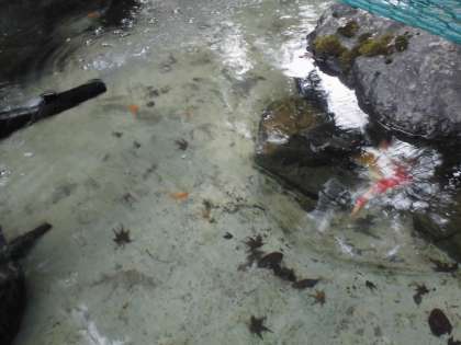 きれいになった観察池に, 新しい仲間がやってきました。地域の人々からいただいた金魚や錦鯉たちです。今日は, 岩陰に隠れていることが多かったのですが, 慣れたころには, 池の中を気持ちよく泳ぐようになるでしょう。