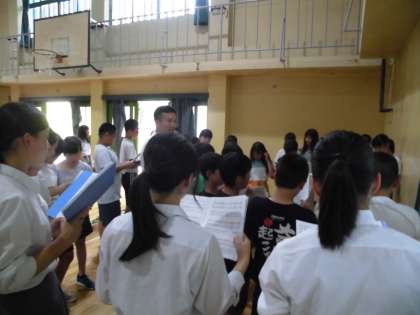 9月11日(水)2校時に高雄中学校の1〜3年生と, 本校5・6年生とで「小中合同音楽」の学習をしました。中学生の低音や高音がハーモニーの層に厚みをもたせました。小学生と中学生が心を合わせてハーモニーを奏でる素敵な時間でした。今日練習した曲は, 高雄中学校の学校祭文化の部で, 「小中合同合唱」として発表します。