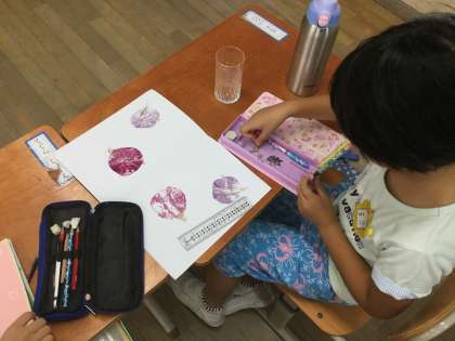 1年 アサガオのたたき染め