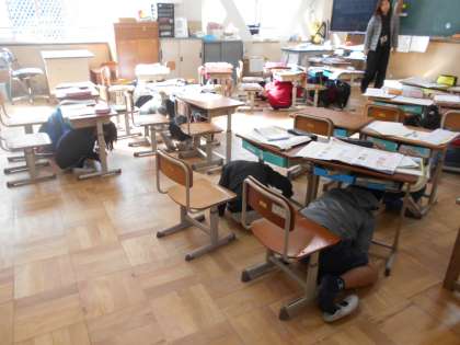 それぞれの場所において,机の下に隠れて身の安全確保をしました。