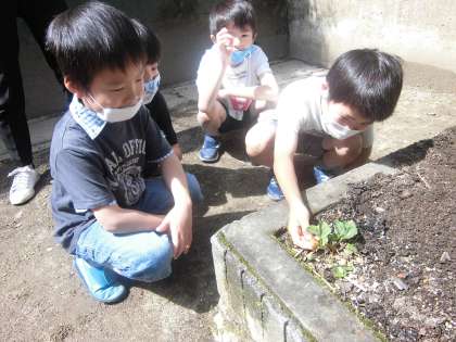 子どもたちの育てているミニトマトもそろそろ支柱からはみ出しそうです。