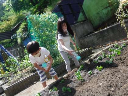 アサガオがたくさん発芽していたので,選んで間引きも行いました。