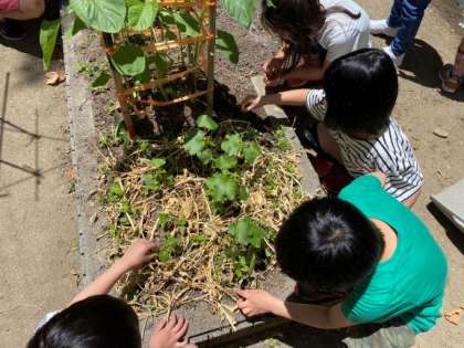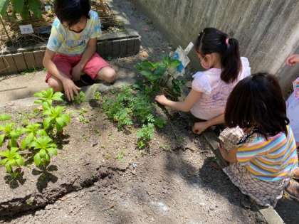 たねまきのあとは,畑の花や野菜の周りに生えた雑草をぬいてきれいにしました。