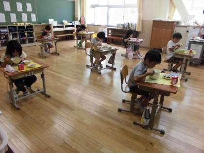 6月9日(火)今日は, 2・4・5年生の登校日でした。2年生は, 今年度初めての給食を「残菜ゼロ」で完食しました。4年生は, ヘチマやヒョウタンなどの植物を観察して, 観察カードに記録しました。5年生は, 小数を10倍・100倍・1000倍すると, いくつになるかを考えることを通して, 数の仕組みについて理解しました。午後の授業が始まり, 少しずつ以前の「日常」を取り戻しつつあります。