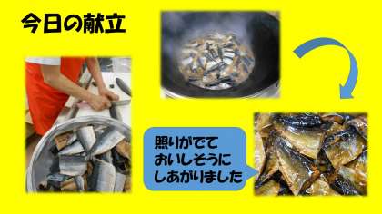 今日の給食では, 脂の多い「にしん」とその脂やにしんのうまみを吸い込んでくれる「なす」を使った「にしんなす」が登場しました。にしんとなすは相性がよく「であいもん」とよばれています。