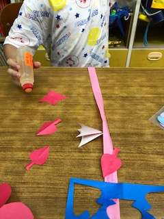 ずこうのがくしゅうで ちょきちょき かざりをつくりました。